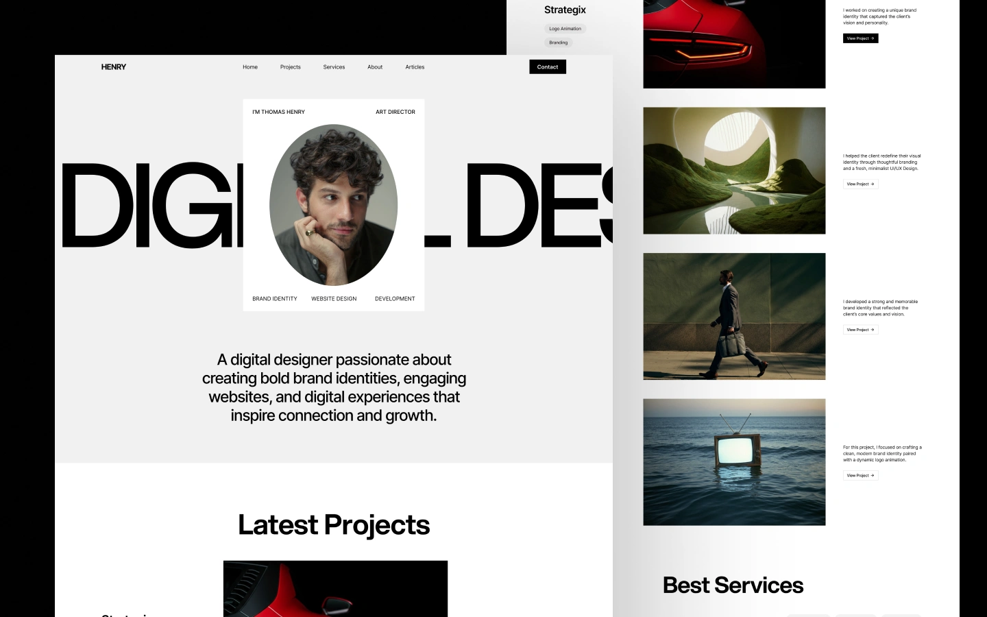 Thomas.H - A polished and elegant Webflow portfolio website template. This template, which is perfect for designers, developers, photographers, and other creatives, elegantly and simply displays your work.