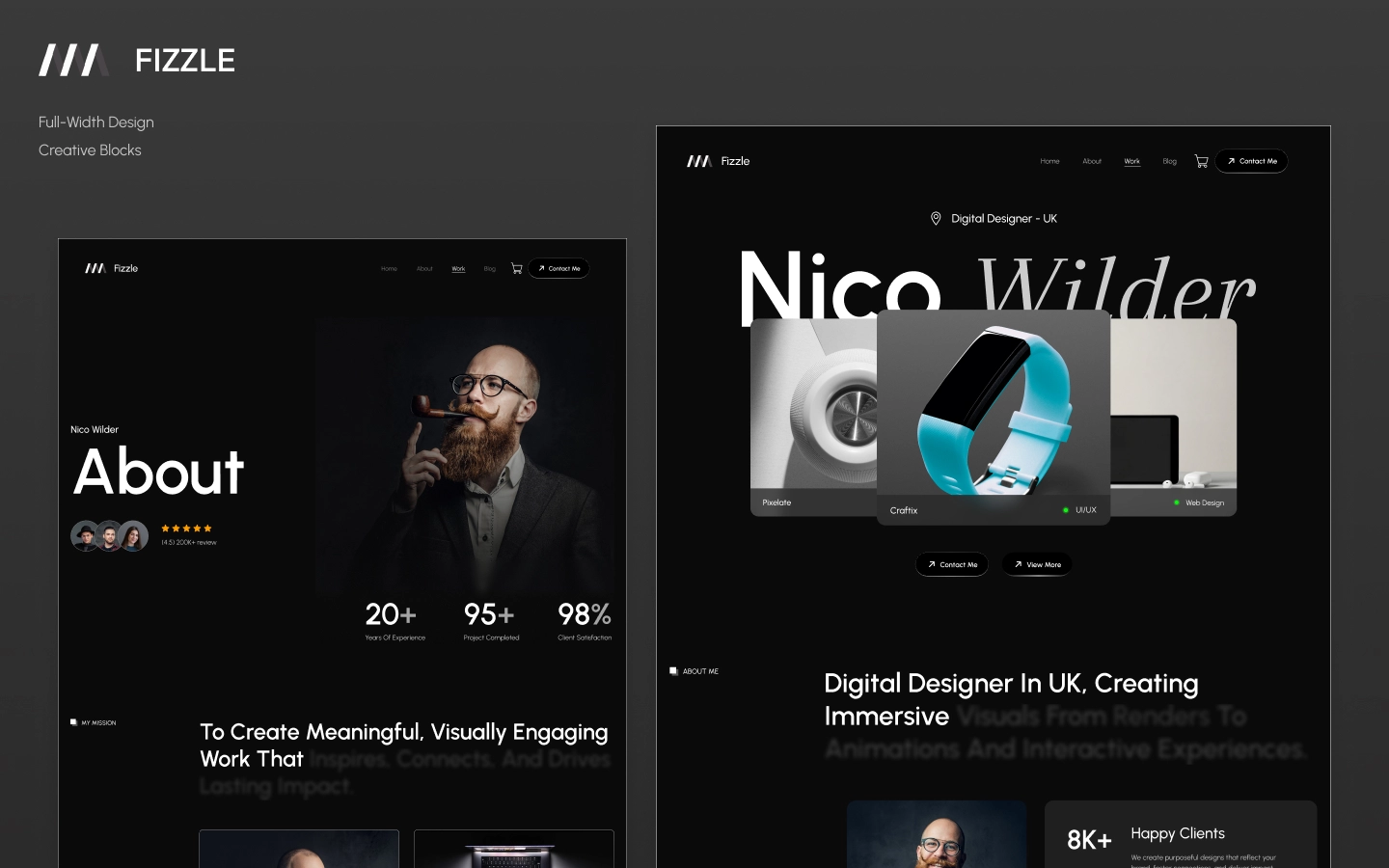 Fizzle is a sleek, modern Webflow portfolio template designed for creatives and professionals. Fully responsive and easily customizable, it’s perfect for showcasing your work, skills, and achievements with a clean, minimalist aesthetic.