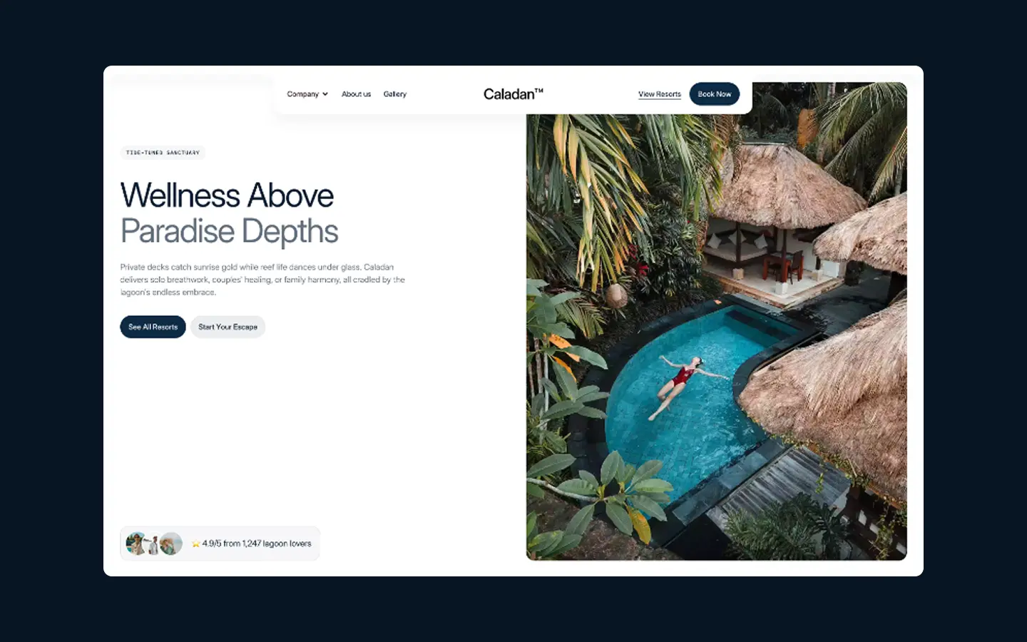 Caladan is a premium Webflow template designed for tropical resorts and beach hotels. Includes booking pages, galleries, and resort experiences.