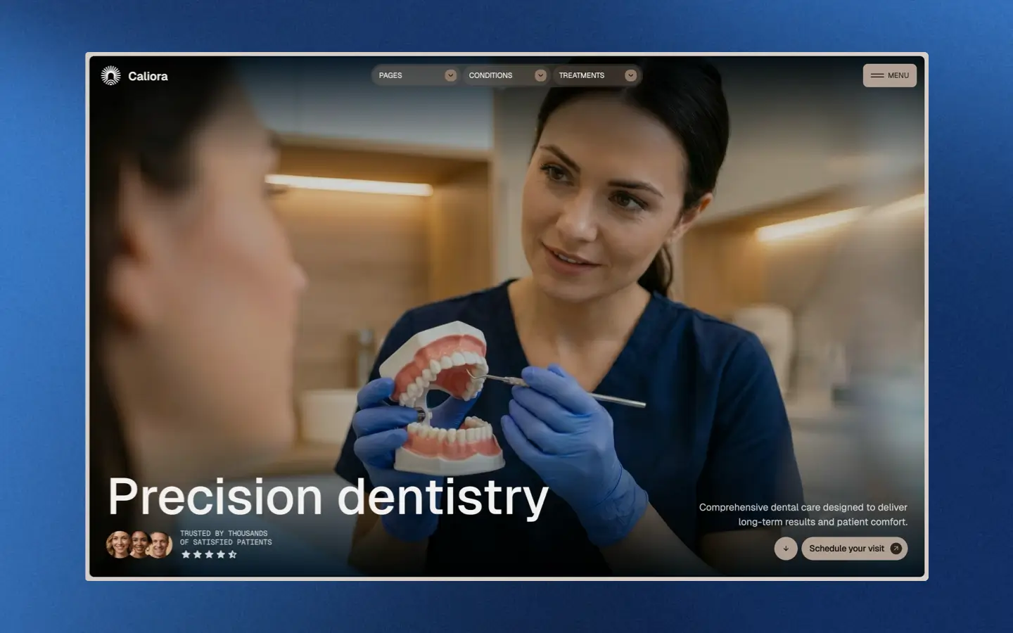 Caliora gives dentists and Webflow developers a complete, production-ready website without starting from scratch. Every page, section, and interaction is designed to look custom-built from day one. Duplicate, add your content, and launch.