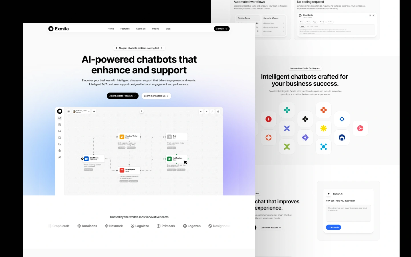 Exmita is a premium Webflow SaaS template built for startups and tech companies. Featuring a clean design, smooth interactions, and scalable layouts, it helps you launch a high-converting website effortlessly.