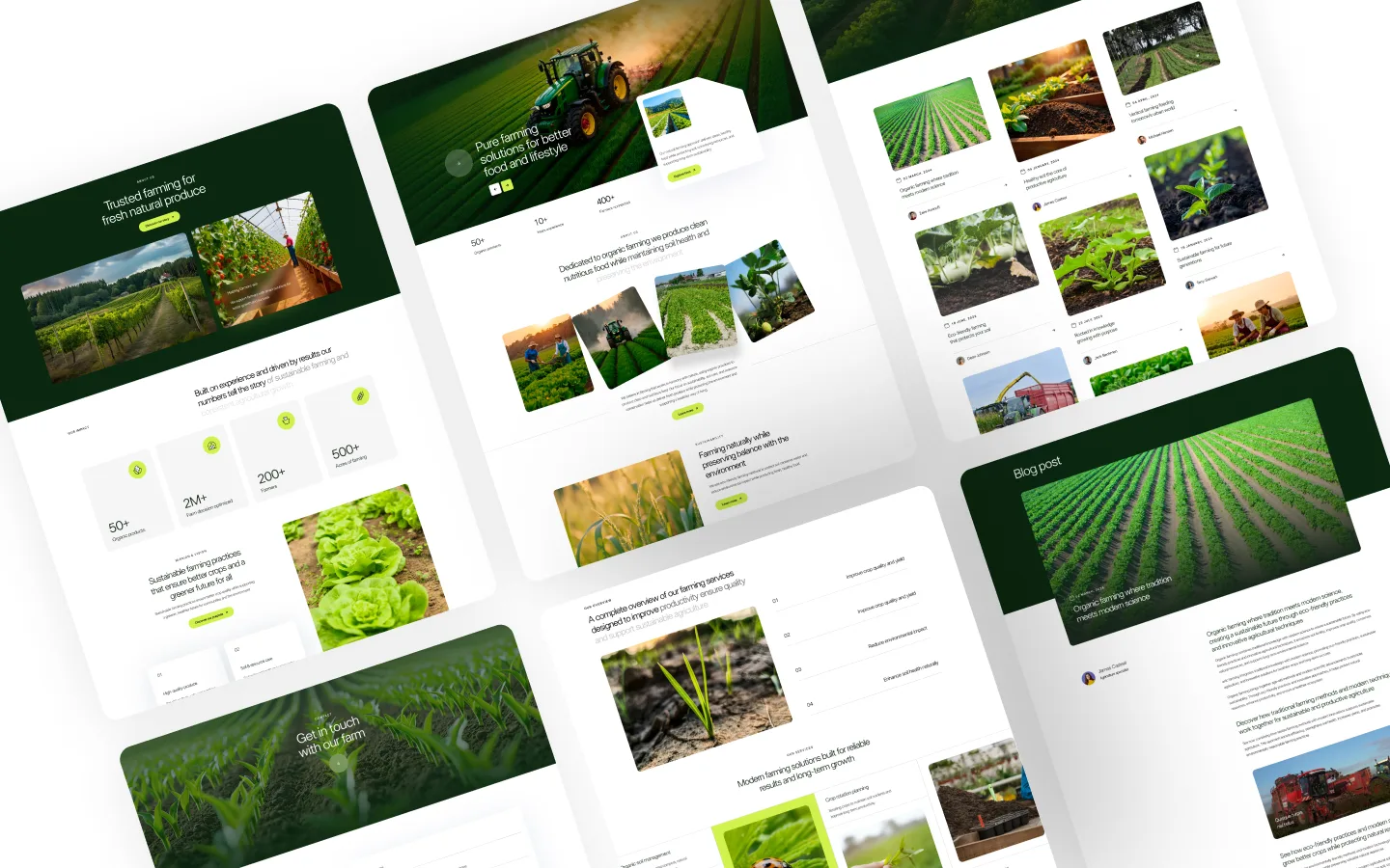 <p>Harvestam is a comprehensive multi-layout Webflow template purpose-built for organic farms, sustainable agriculture businesses, and farm-to-table brands. It includes 19+ demo pages spanning three distinct homepage styles, three service page layouts, farm package pricing, three blog formats, three contact page variations, and an FAQ page — giving agricultural businesses a complete web presence out of the box. The design uses a rich forest-green and chartreuse color palette with full-bleed crop field photography to convey natural authenticity. CSS Grid and scroll-based interactions create structured, dynamic layouts without feeling corporate. Ideal for organic produce suppliers, sustainable farming cooperatives, and eco-agriculture consultancies looking to differentiate from generic green-themed sites.</p>
