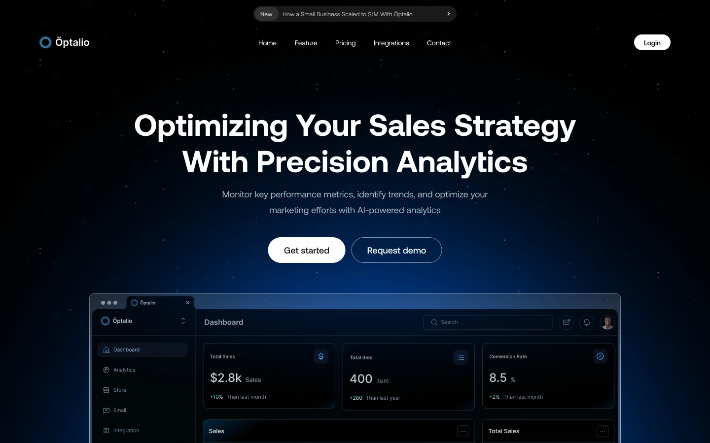 Optalio is a modern and data-driven Webflow template built for CRM platforms, sales teams, and SaaS companies. Designed to empower businesses with precision analytics, Optalio helps you monitor key performance metrics, identify trends, and optimize your sales and marketing strategy with ease. Its clean, professional design combined with AI-powered insights makes it the ideal solution for companies aiming to scale smarter and faster.