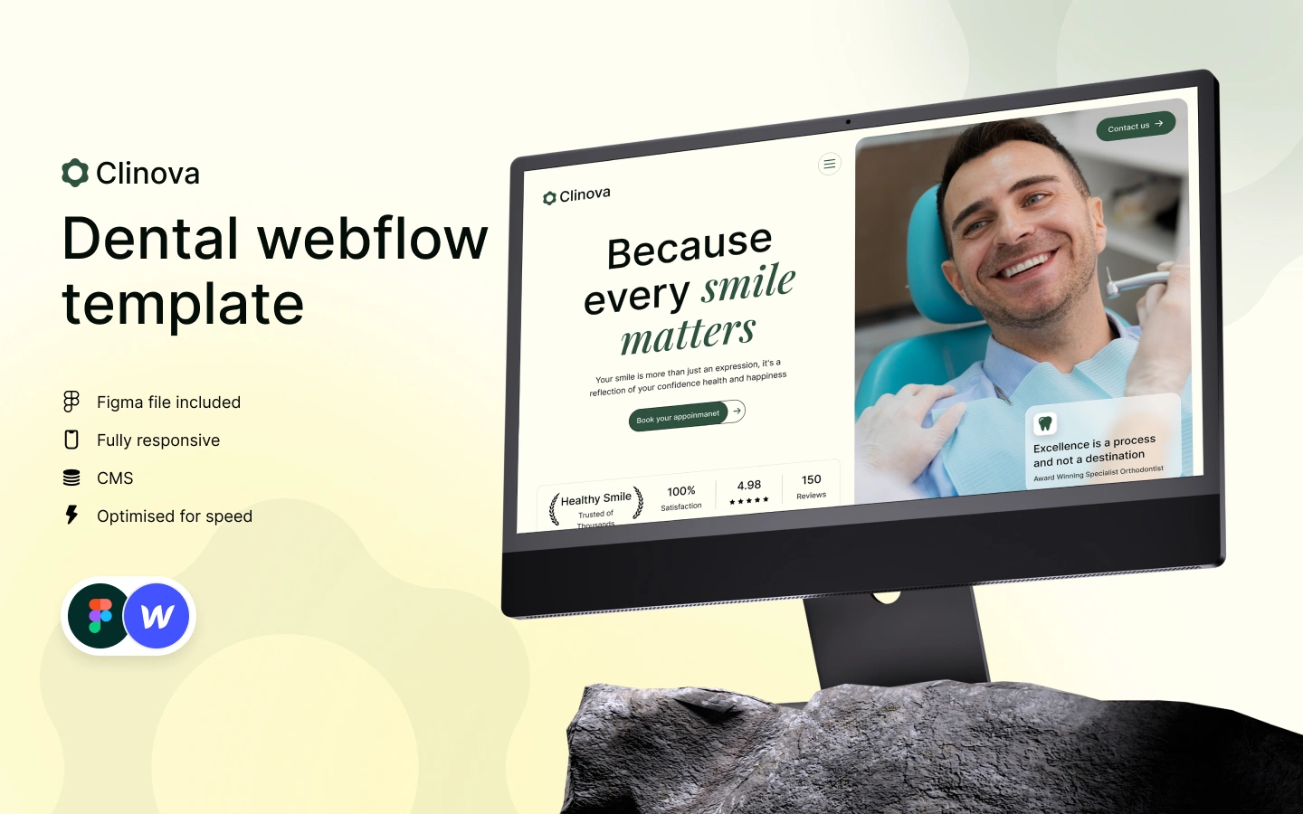 Clinova delivers a modern and minimal structure built for website design for dentists, combining a sharp layout with refined animations. Its organized CMS for services and articles helps clinics launch a professional dental website quickly.