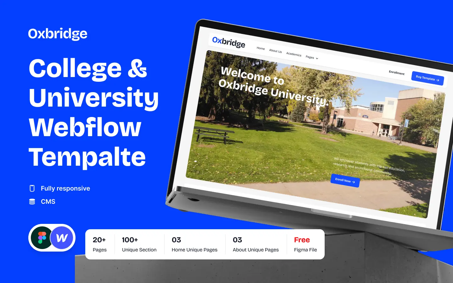Looking for the ultimate university/college webflow template? Meet Oxbridge, your go-to professional webflow template for launching stunning websites with a variety of features included for educational institutes.