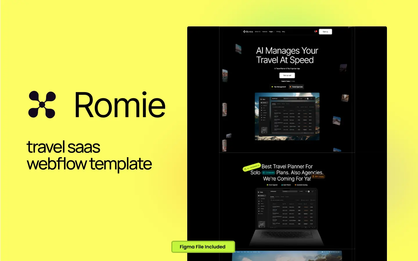 Romie™ is a dark, bold, design-forward Webflow template built for SaaS products, AI startups, and travel app companies that refuse to blend in.