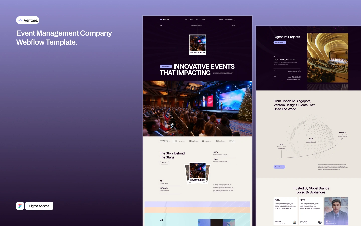 Ventare is a creative event management website template designed for teams that transform ideas into unforgettable experiences. Built to highlight innovative events and impactful moments, the template helps event planners present their services, projects, and creative vision with clarity and confidence.